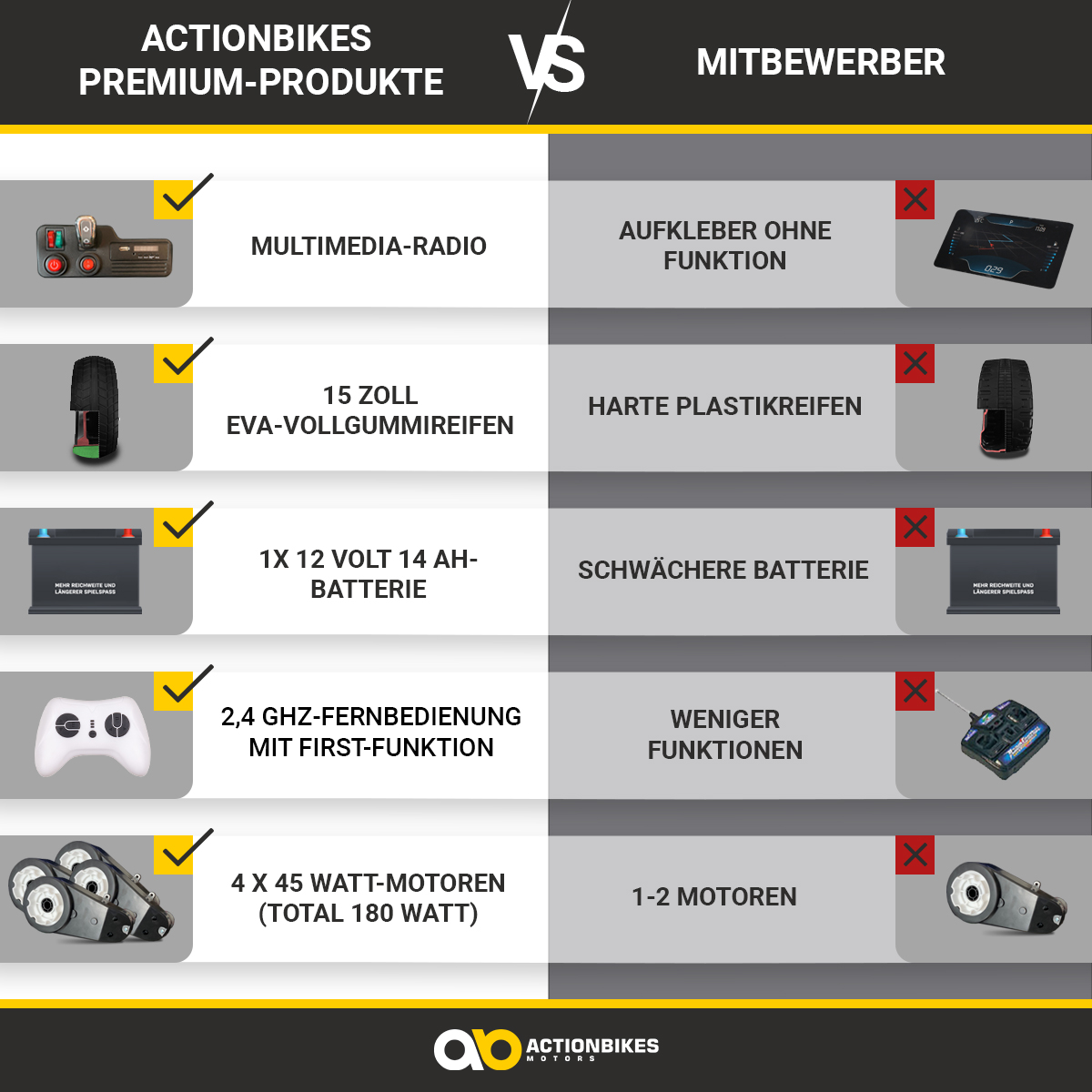4x 12 Volt 45 Watt Motoren (Total 180 Watt) |