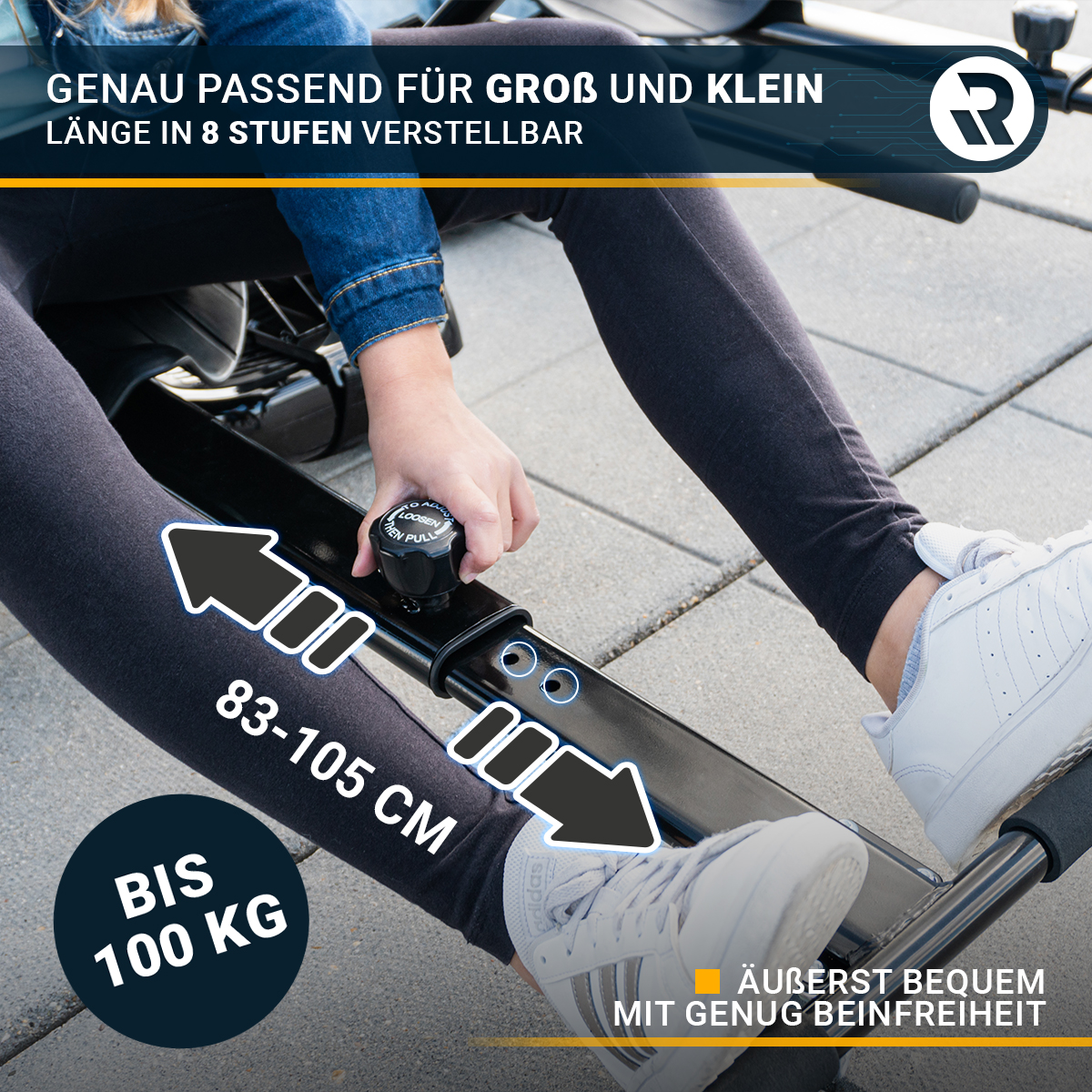 Länge in acht Stufen verstellbar