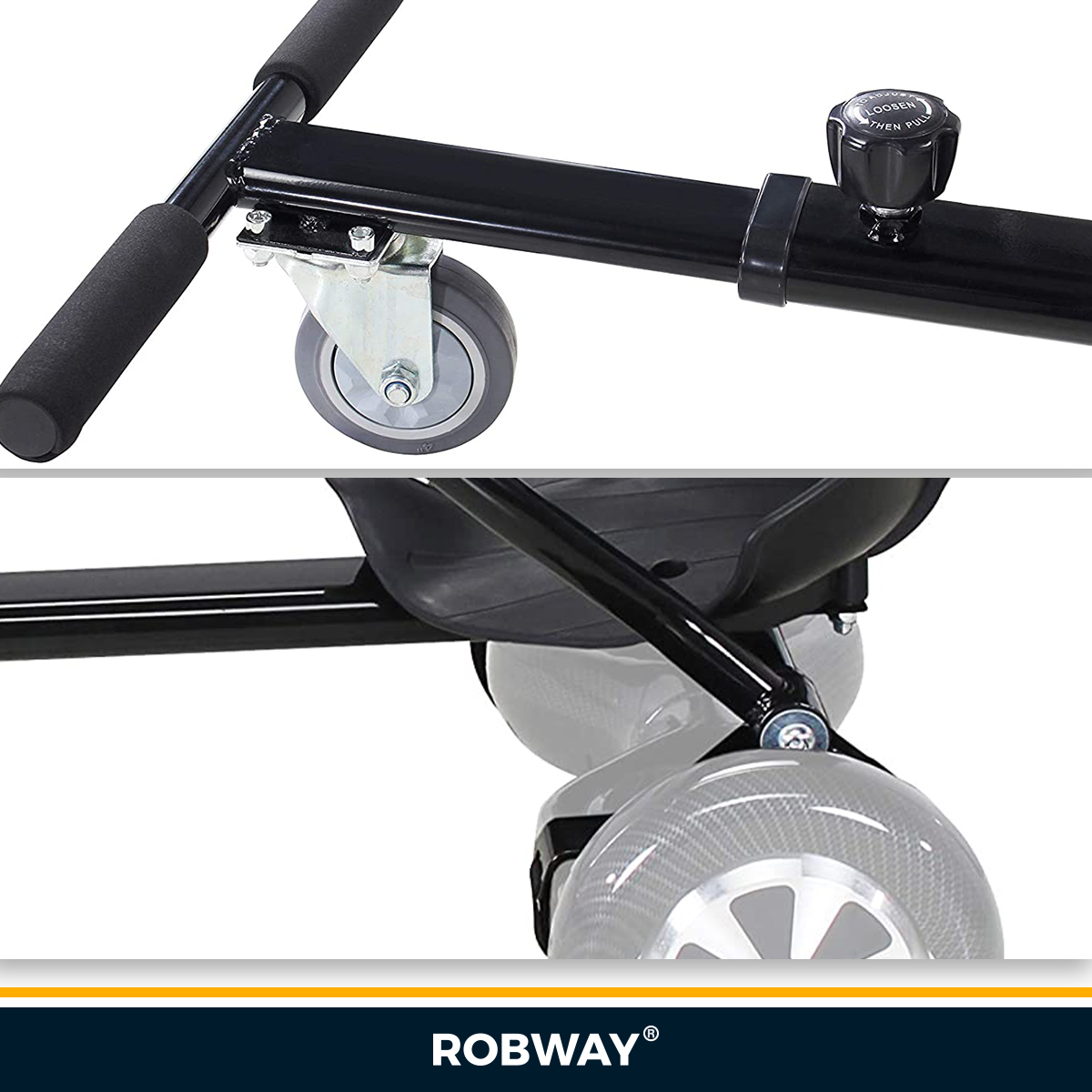 Ob im Park oder dem Skateplatz: Mit dem Robway Hoverboard-Sitz fallen Sie sofort auf. Widerstandsfähiger Stahl macht ihn äußerst robust. So hält er auch rasanten Fahrten locker stand.